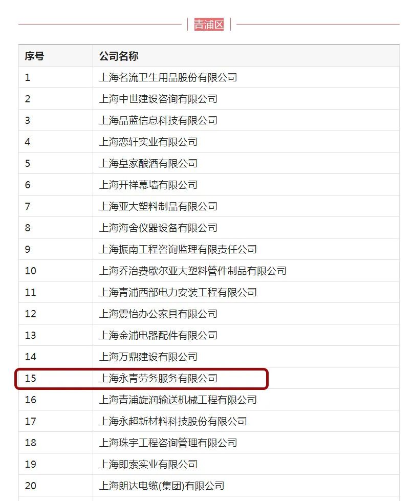 上海永青勞務(wù)服務(wù)有限公司榮登“上海市1501戶企業(yè)新晉2020-2021年上海市守合同重信用企業(yè)”光榮榜。